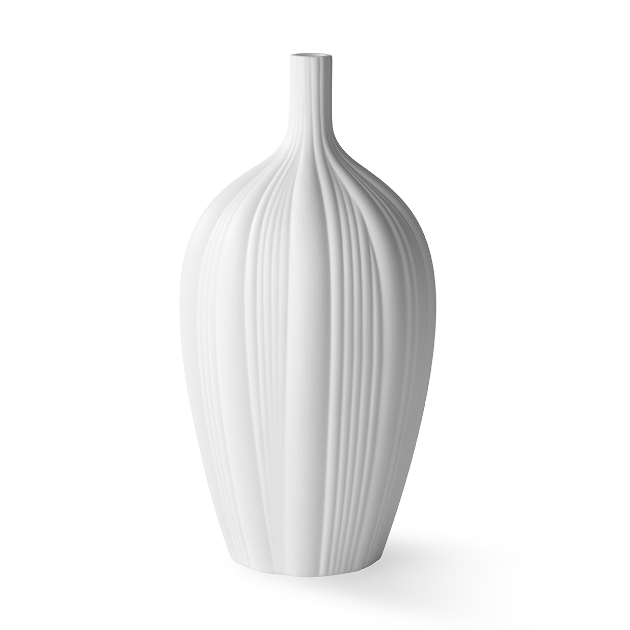Elegant tall-necked bottle shape with hand-sculpted petal styles