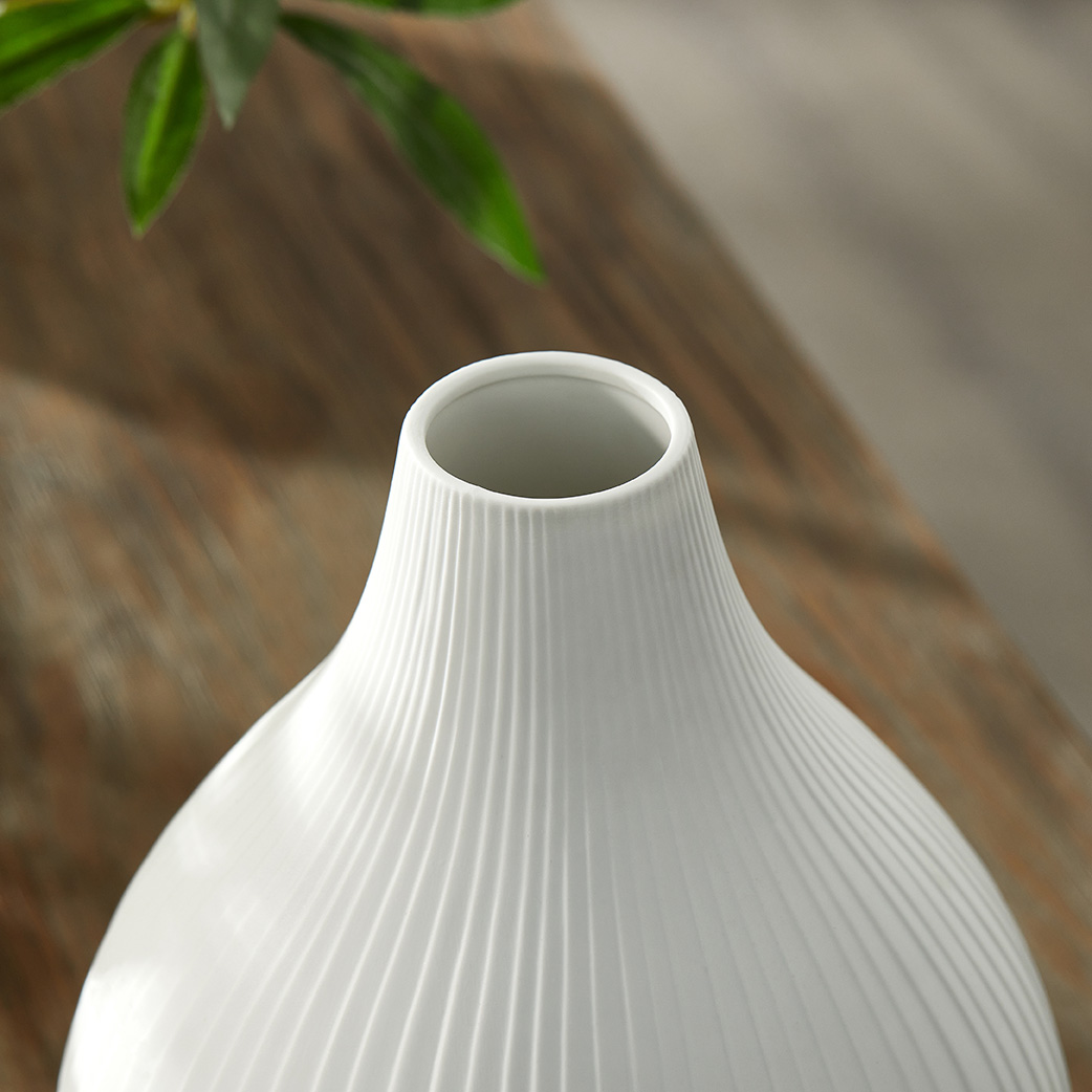 The design featuring an elongated and narrow opening resembles a vintage ceramic vase,